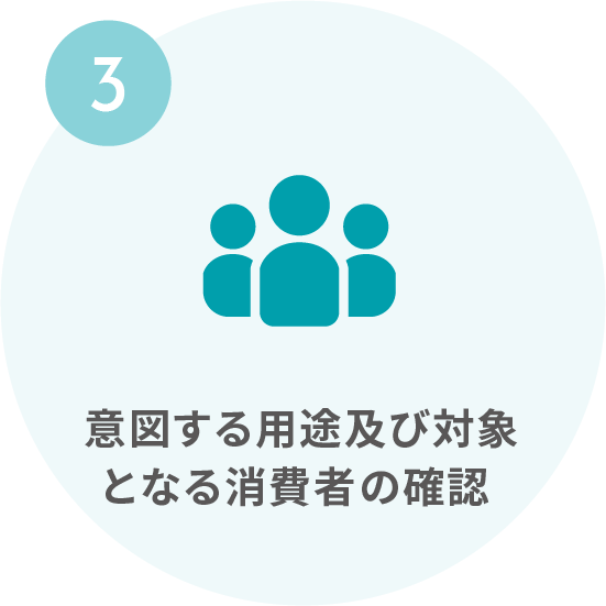 製品の用途と対象の消費者(エンドユーザー)の確認を行います。