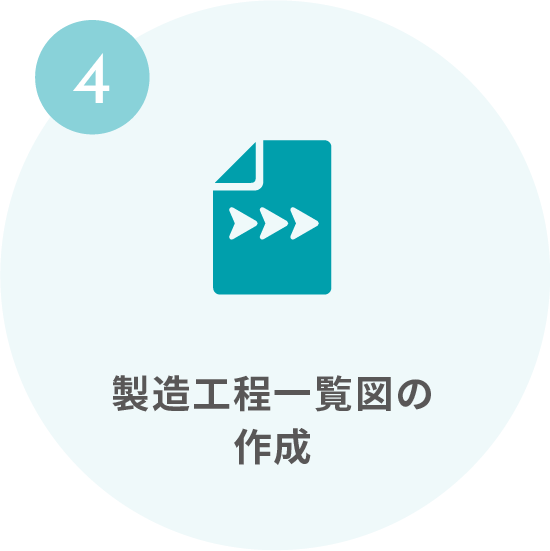 原材料の受け入れから出荷・食事提供までのプロセスを工程ごとに書き出した資料を作成します。