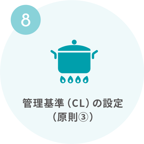 手順7で特定したCCPを適切に管理するための基準(時間、温度等)を設定します。例えば「80度以上で3分加熱する」といったものです。